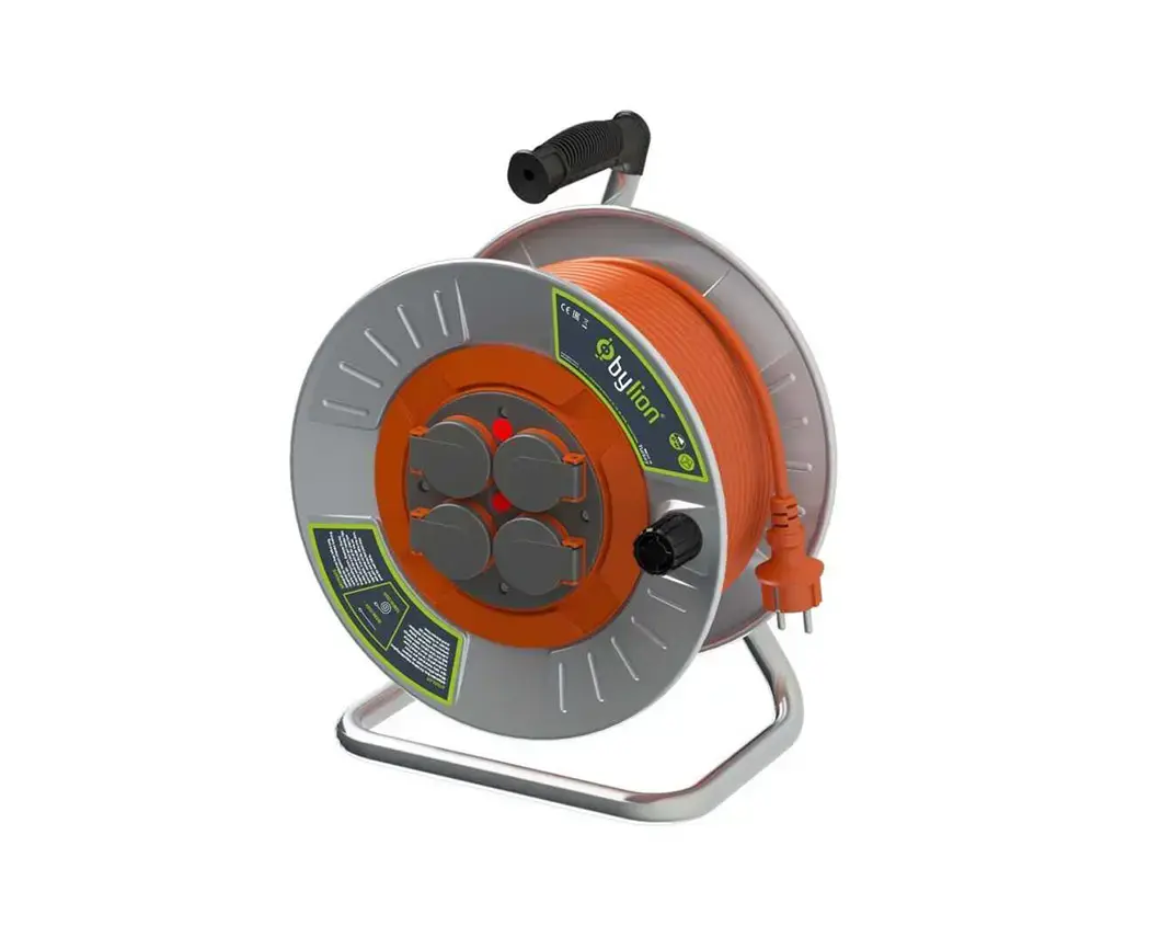 The ByLion professional extension reel is a reliable solution for demanding applications in industry, construction, workshop and home. Its robust metal construction and high quality workmanship make it suitable for indoor and outdoor use.