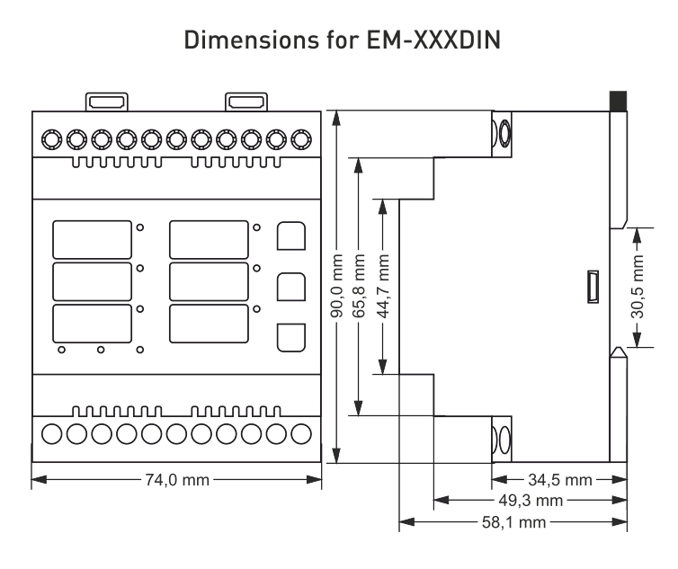 - Measuring transformer included (EM-100DIN and EM-250DIN).