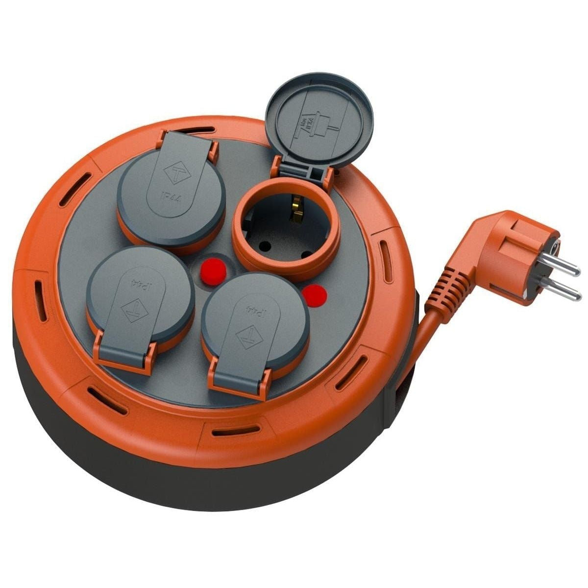 This model is equipped with four sockets and a robust H05VV-F cable with a cross section of 3G1.00mm² and a length of 5 metres, ensuring sufficient reach for a variety of applications. The orange colour of the cable increases its visibility, contributing to safety in use. With this reel, you will ensure easy and quick switching on and off of devices, as well as eliminate cable clutter. You will appreciate this reliable helper when planning events, outdoor activities or working in the workshop.