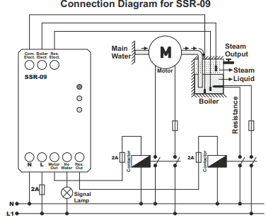 Steam boiler level relays are designed for use in controlling steam ironing boilers with a permanent water supply.