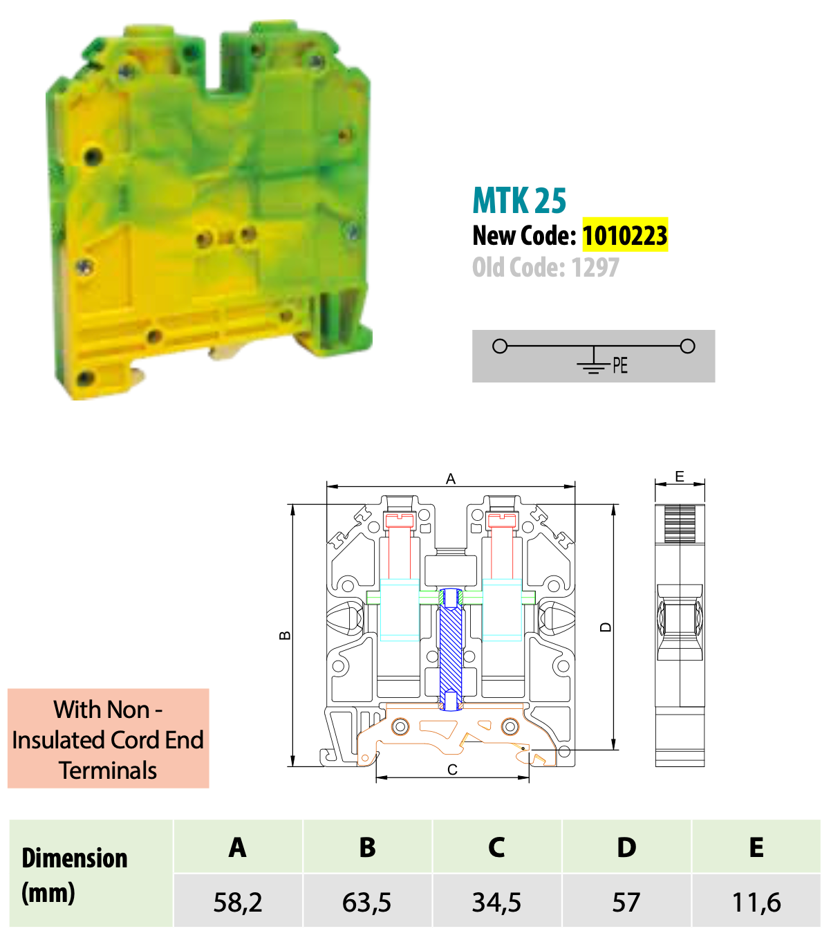Cross section of the connected single wire up to: 25mm2