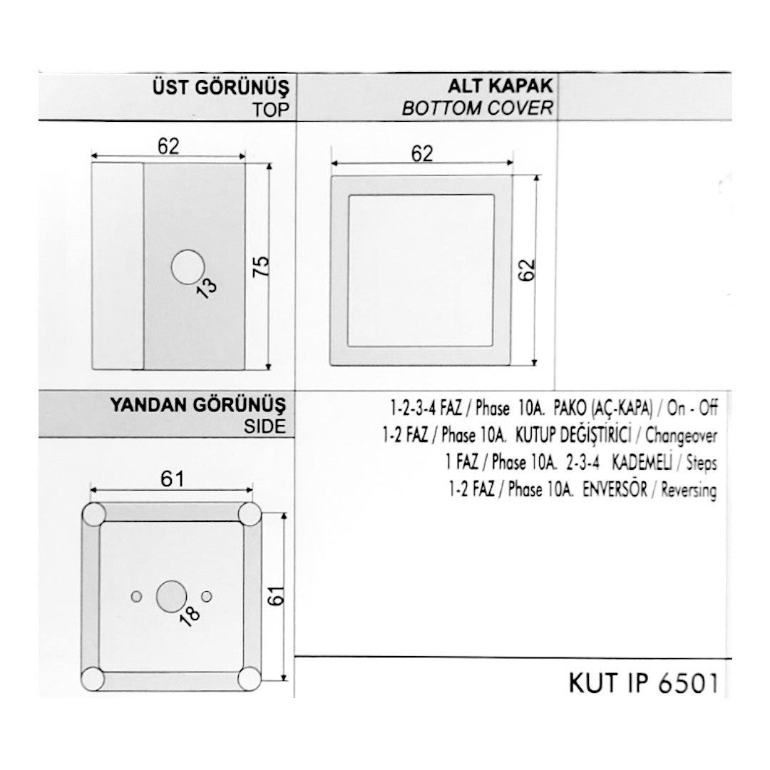 Plastic box IP65 for cam switch, manufacturer OPAŞ (Turkey)