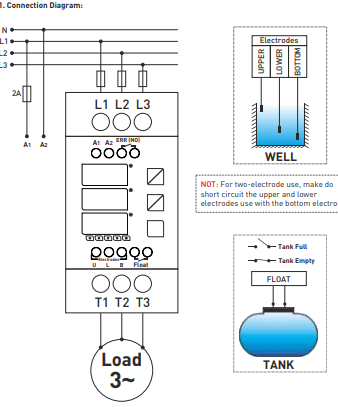 • 1A - 30A submersible pump (internal contactor and current transformers)